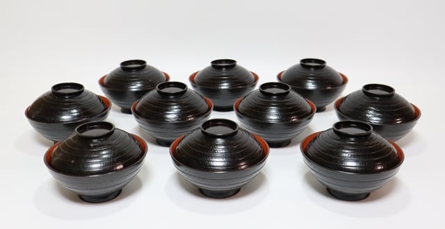 商品説明・内色漆独楽形赤地 煮物椀 10客
