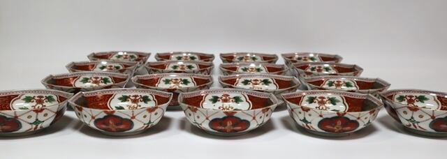 商品説明・古伊万里錦手 エンブレム紋小鉢 17客