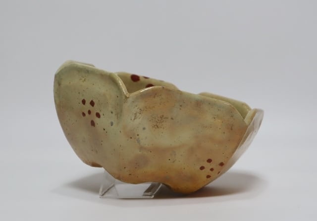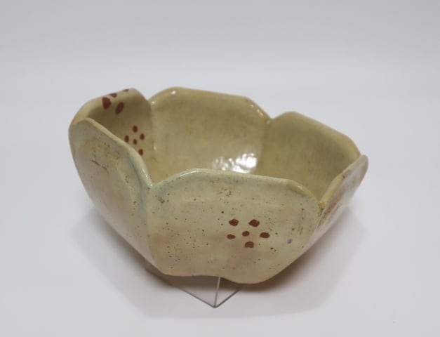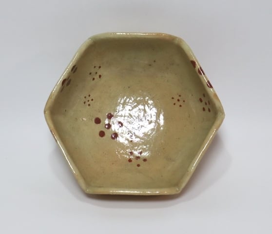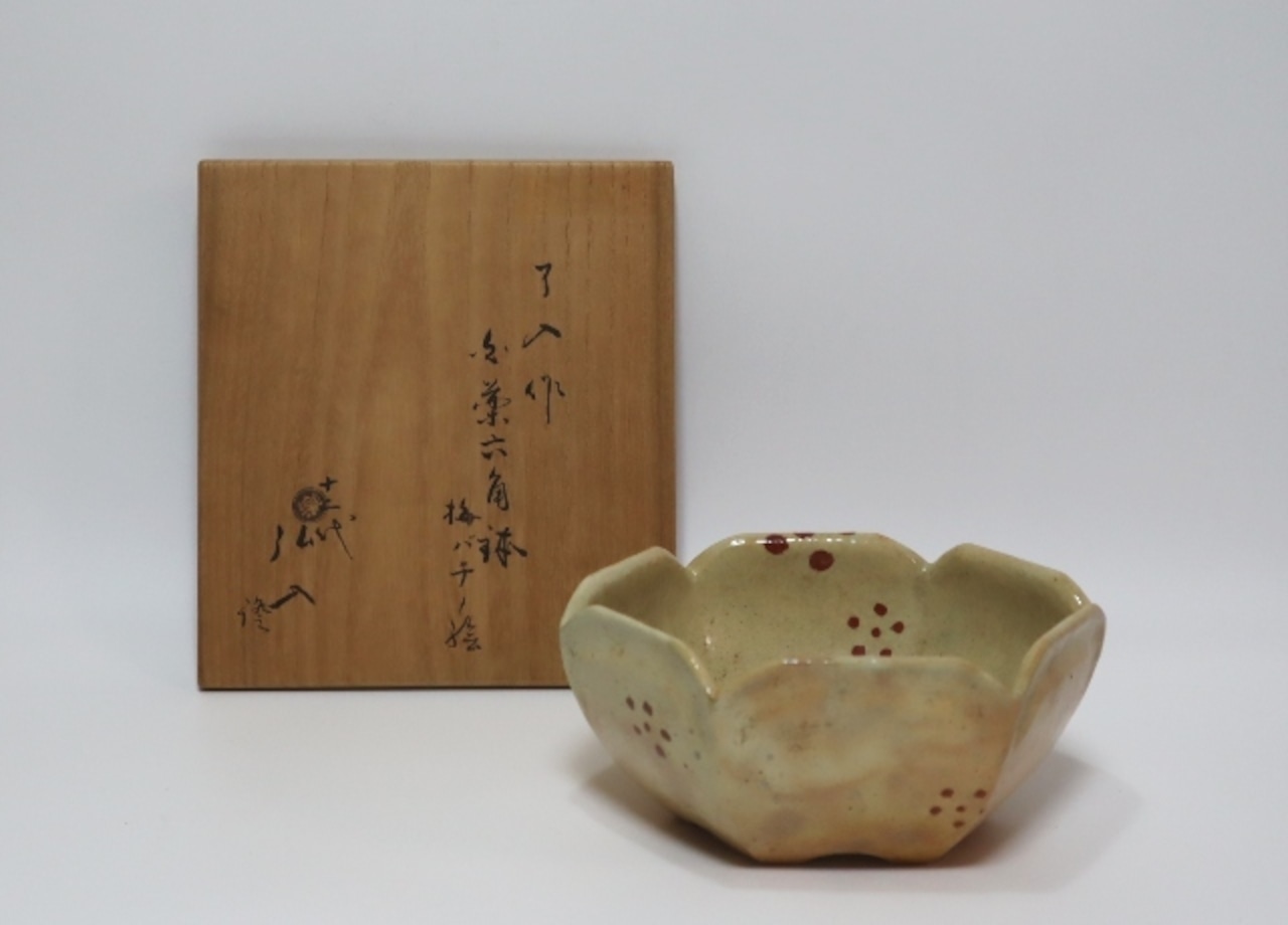 商品説明・楽9代了入造 白楽六角鉢梅バチの絵