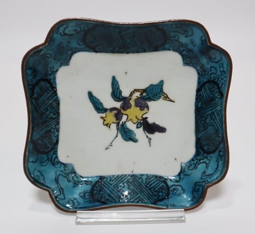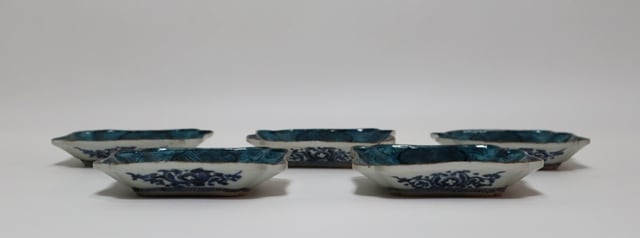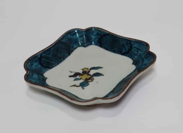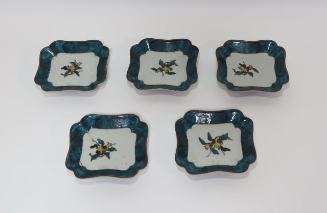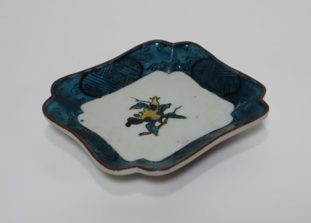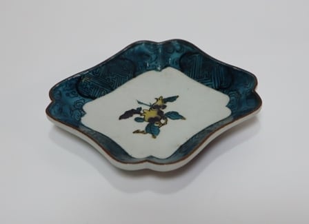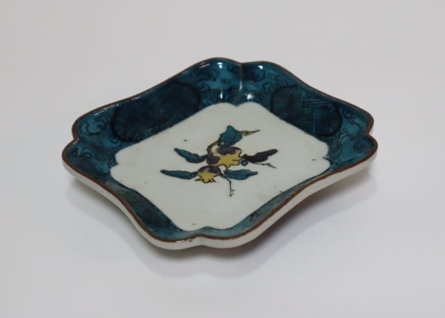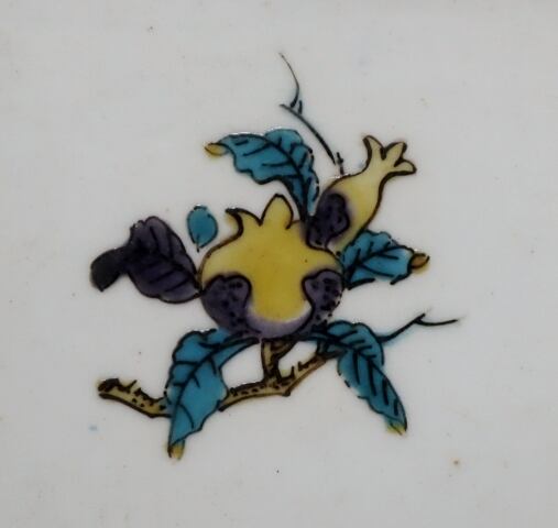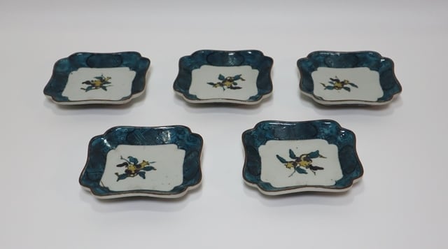商品説明・古九谷ザクロ図 四方角丸小皿 5客