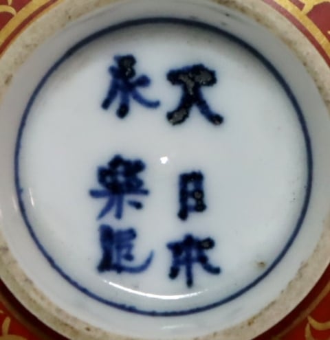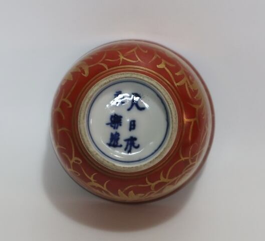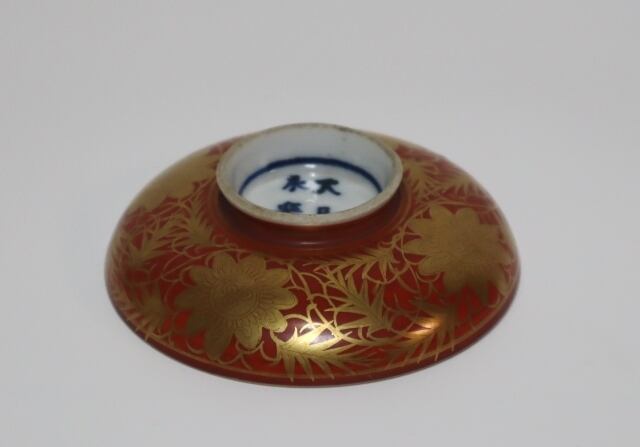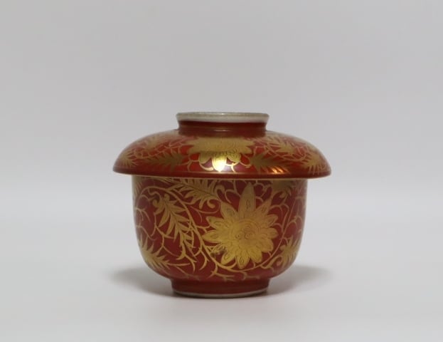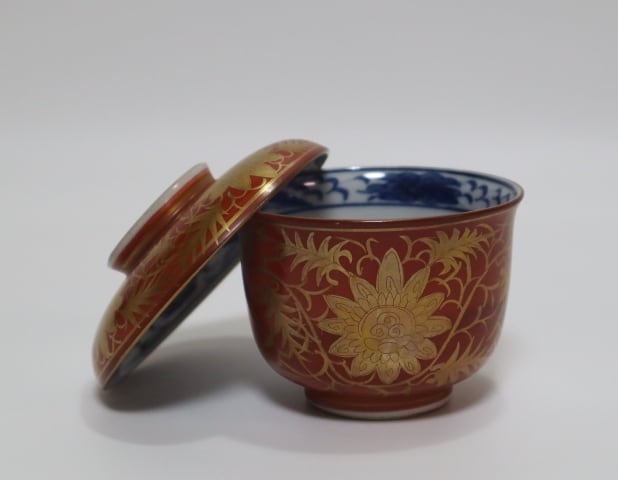 商品説明・九谷 永楽造 赤地金蘭手蓋向う付 5客