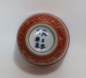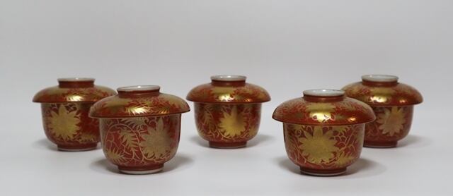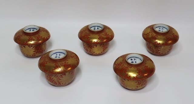 九谷 永楽造 赤地金蘭手蓋向う付 5客