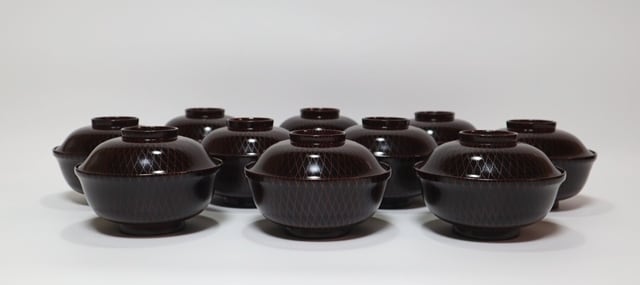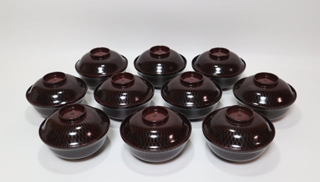 輪島製桜蒔絵 網目模様吸い物椀 10客