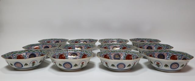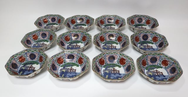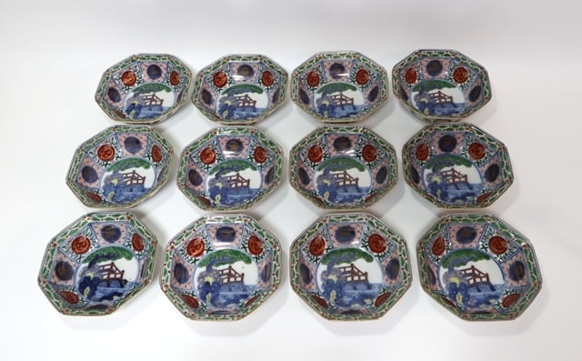 商品説明・大聖寺錦手八角五寸 向う付 12客