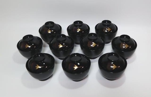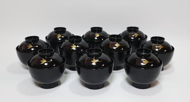 輪島田谷造 福茄子蒔絵吸い物椀 10客