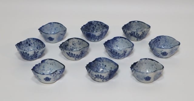 永楽善五郎造 吹き墨貝形酒盃 10客