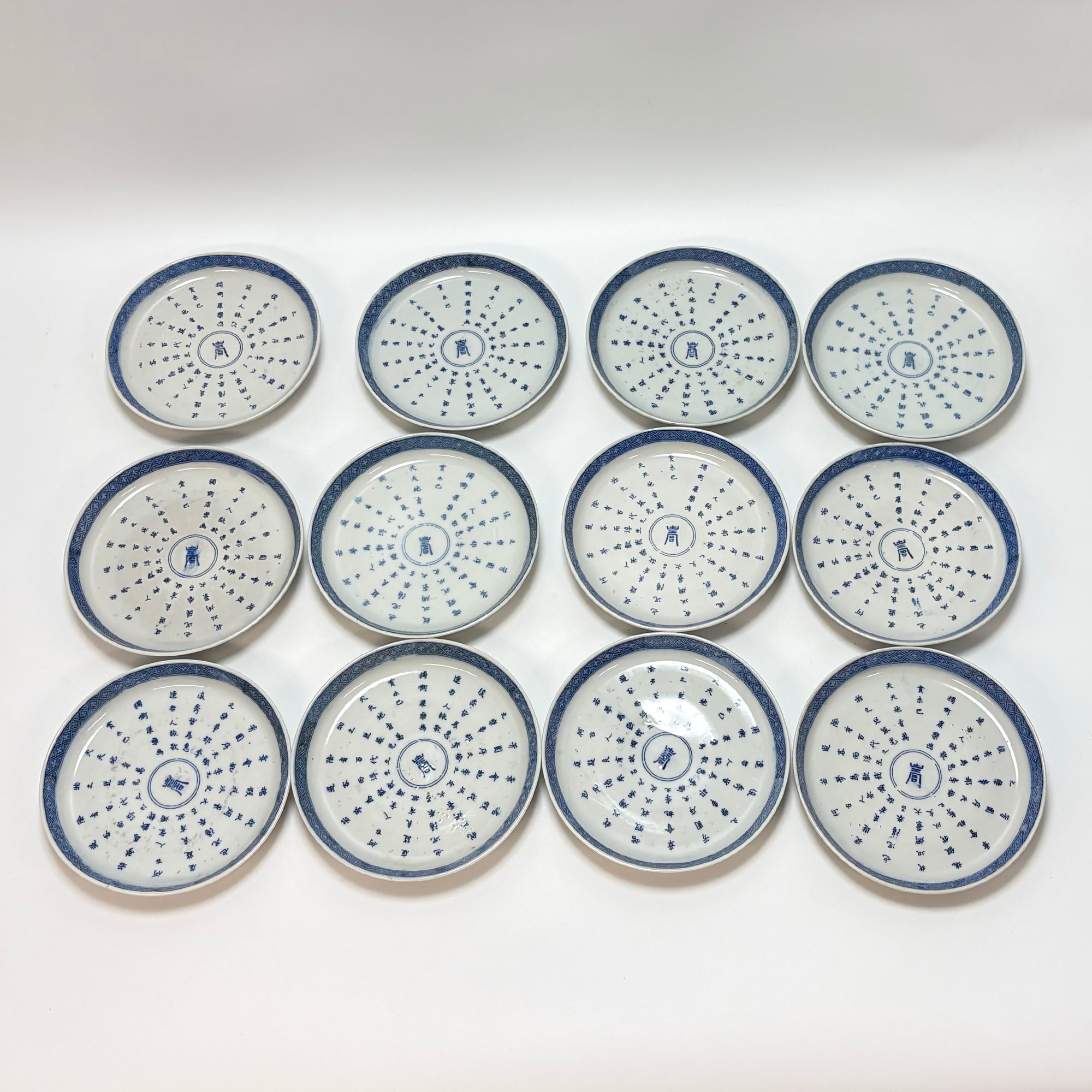 商品説明・若深珍蔵造 印判手文字皿  12客