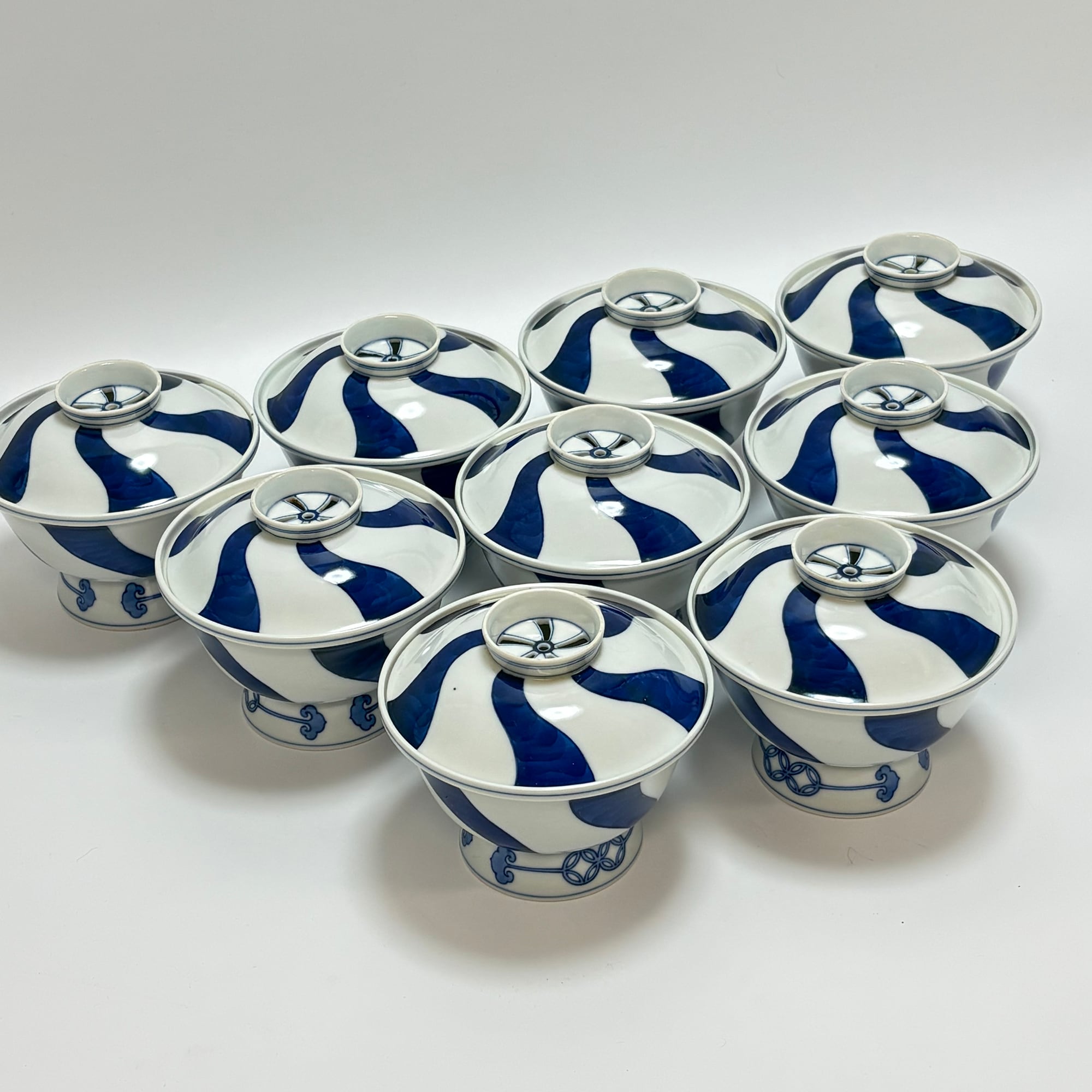商品説明・澤村陶哉造 染付捻絵蓋向う付 8客