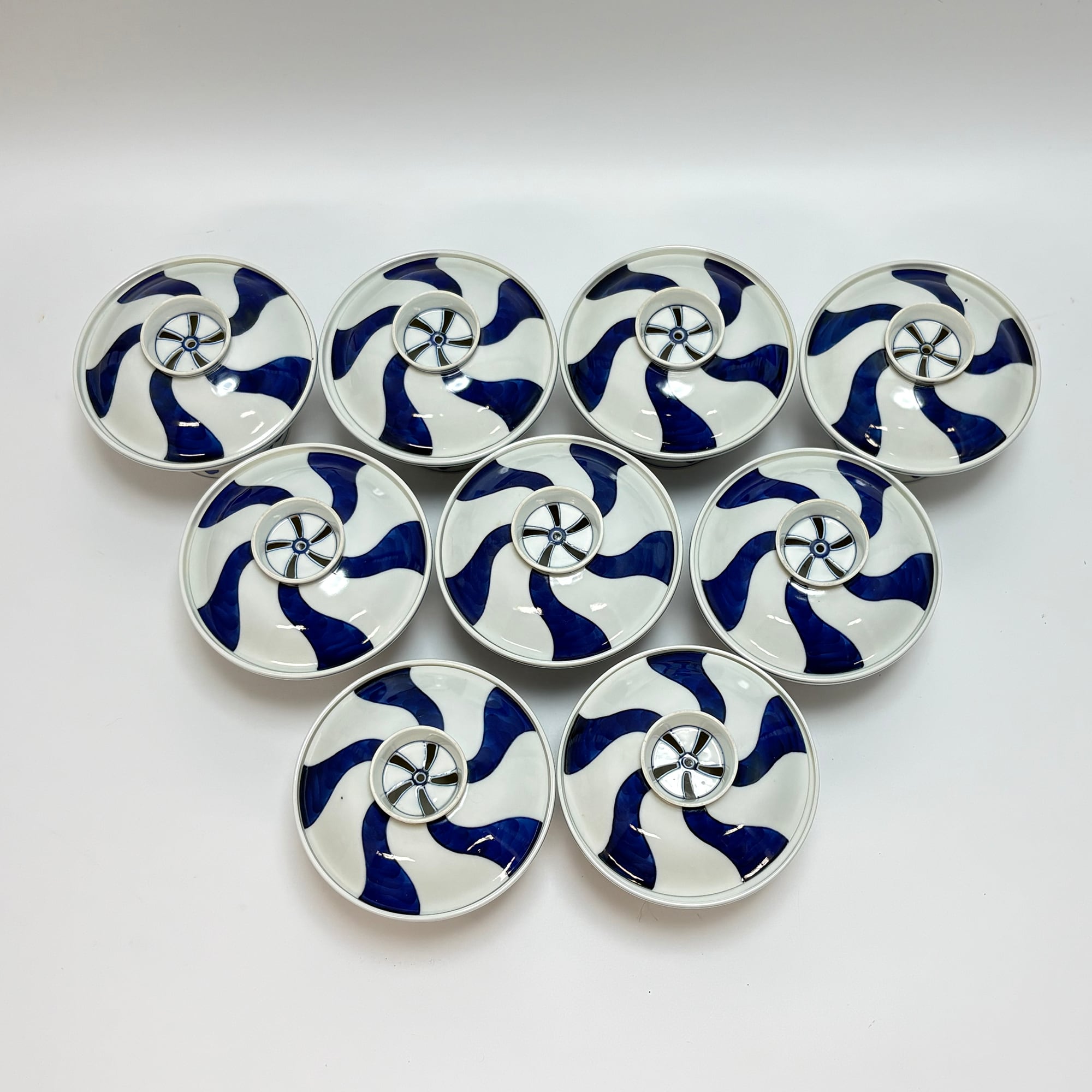 澤村陶哉造 染付捻絵蓋向う付 8客