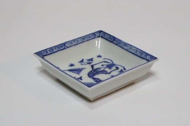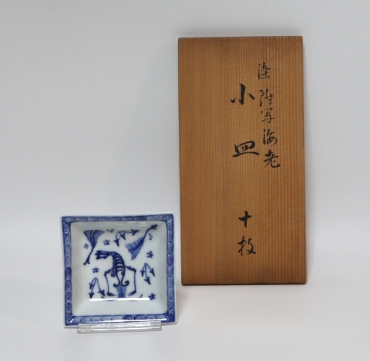 商品説明・永楽善五郎造 染付写海老四方小皿 10客