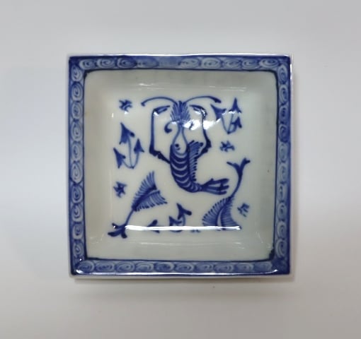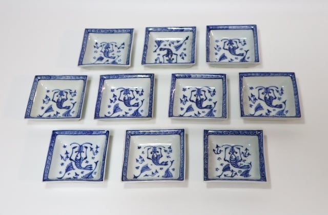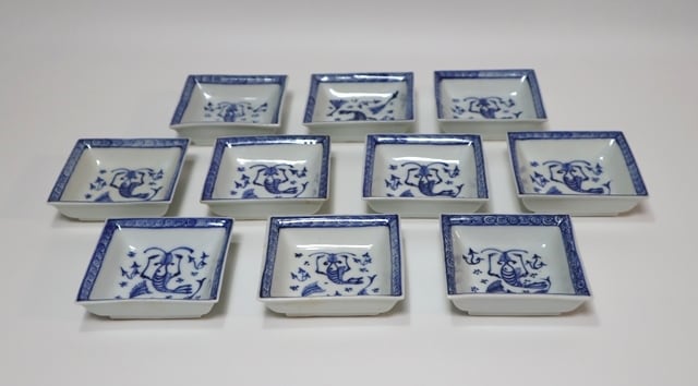 永楽善五郎造 染付写海老四方小皿 10客