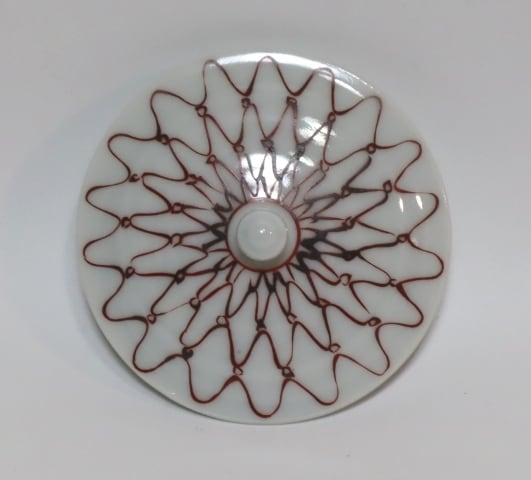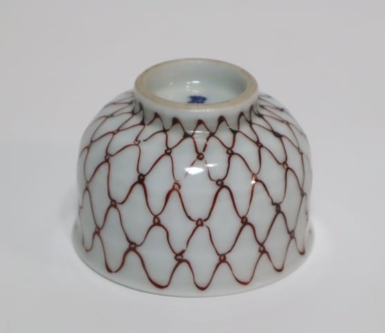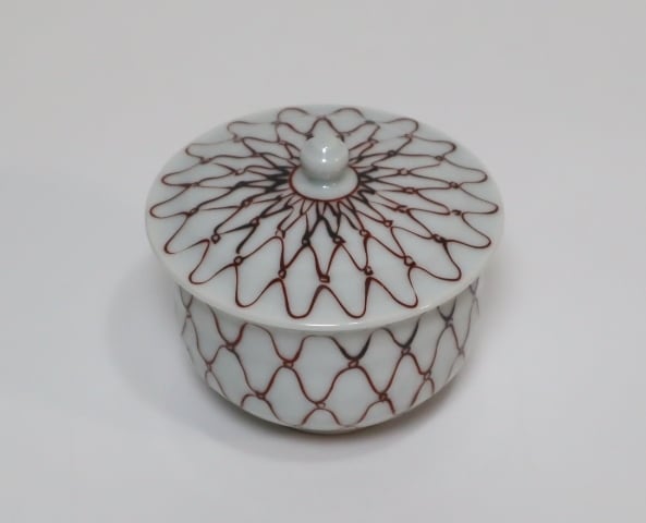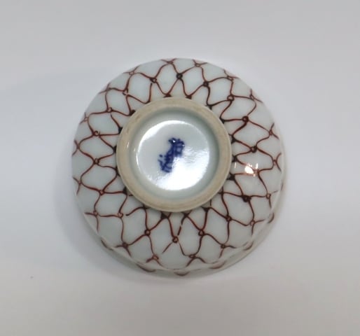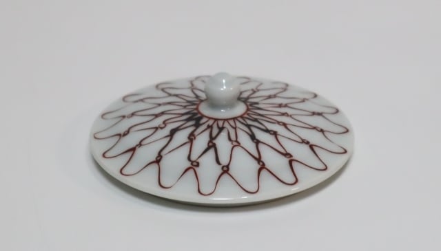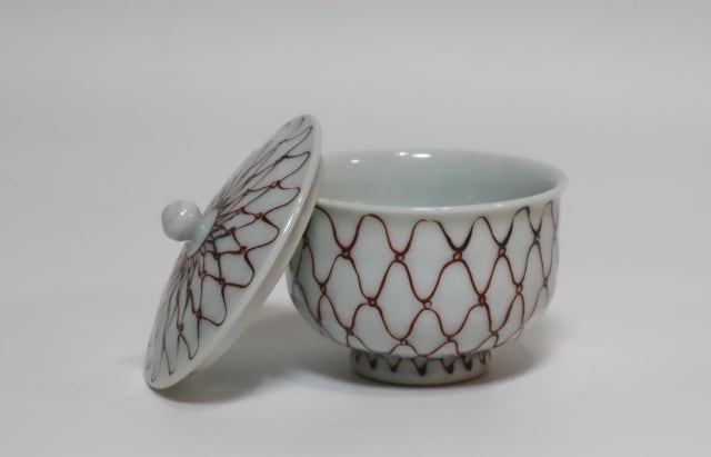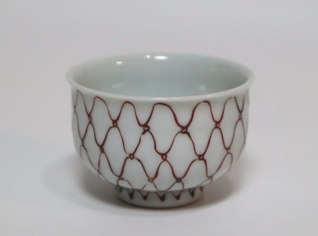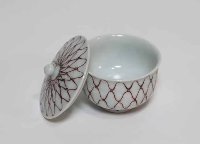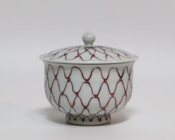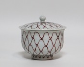 商品説明・西村徳泉造 赤釉網の画蓋茶碗 1客