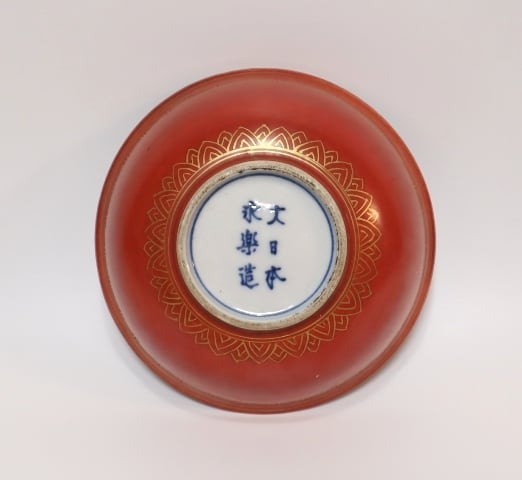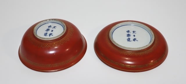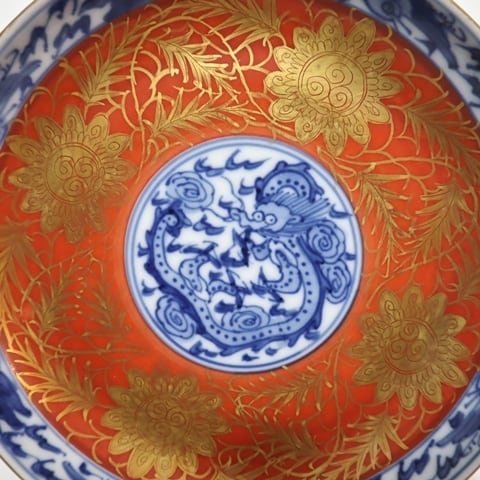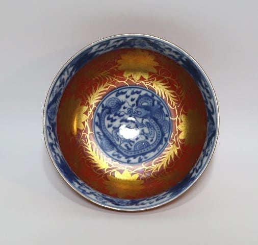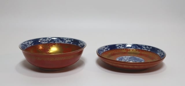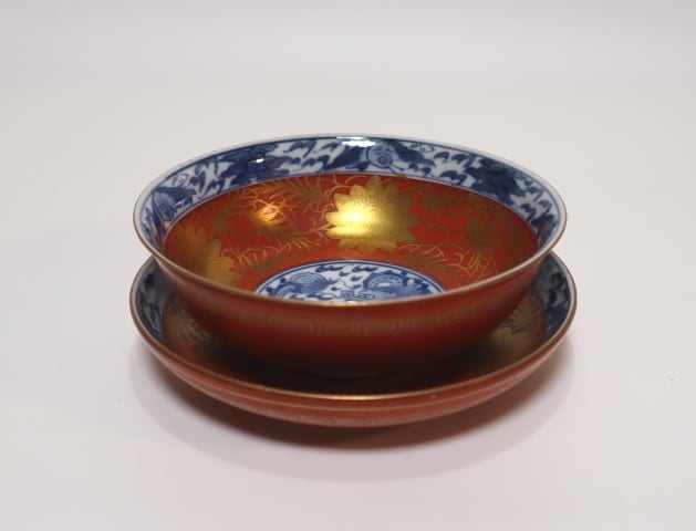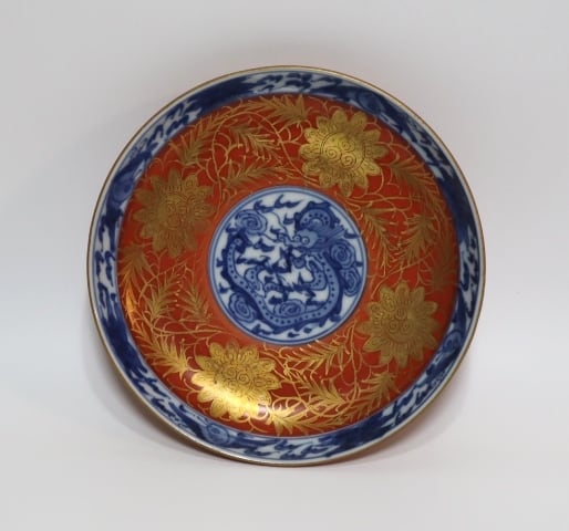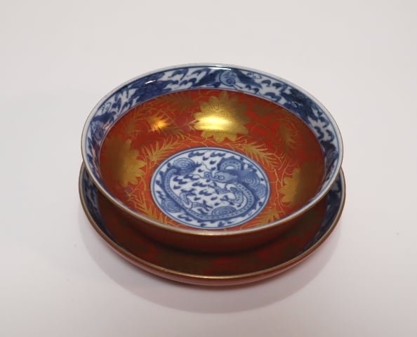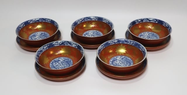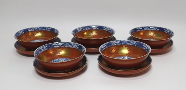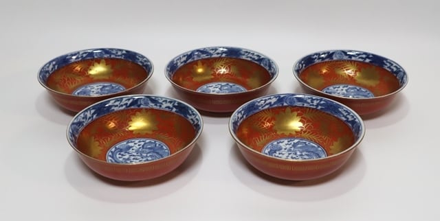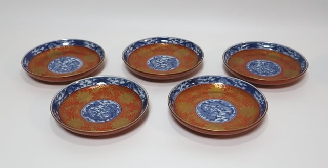 商品説明・九谷永楽赤絵金蘭鉢&皿 5客