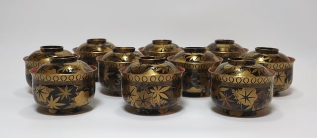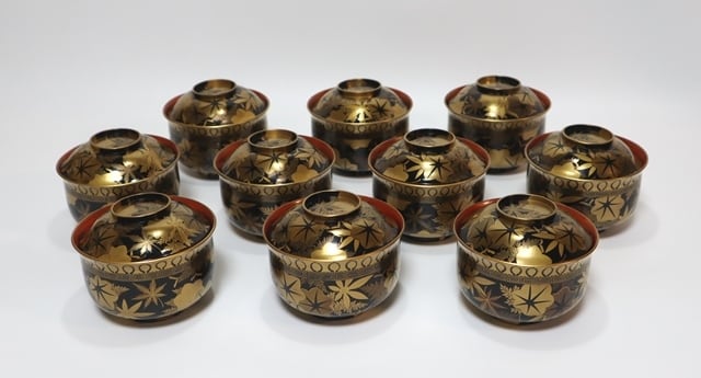 漆匠表寛 蒔絵師幸七造 雲錦蒔絵吸い物椀 10客