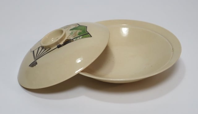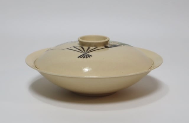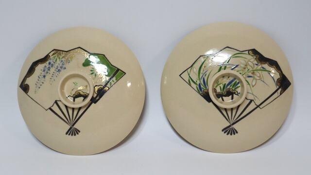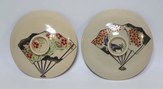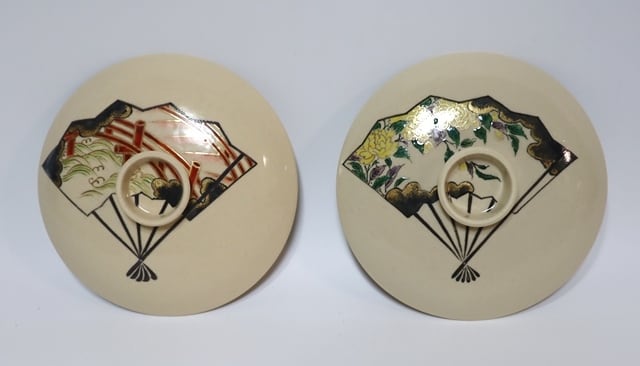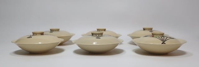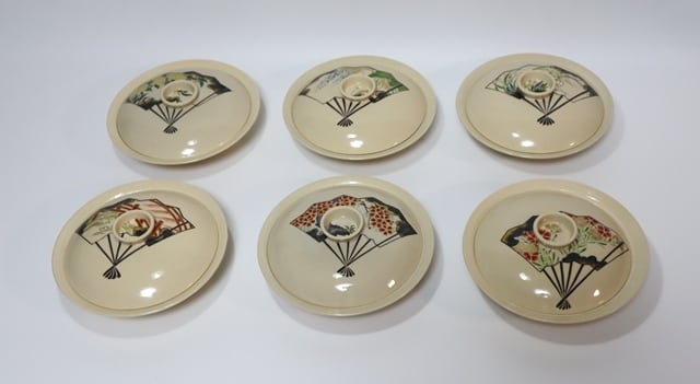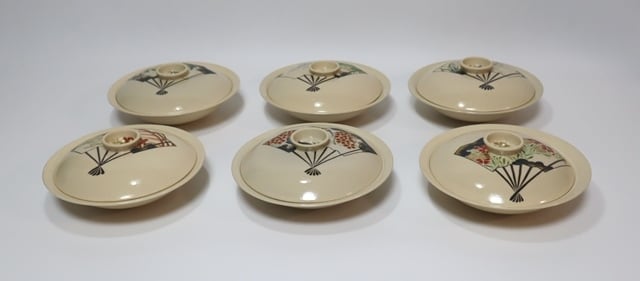 伊藤陶山造 絵変わり扇散し蓋物 6客