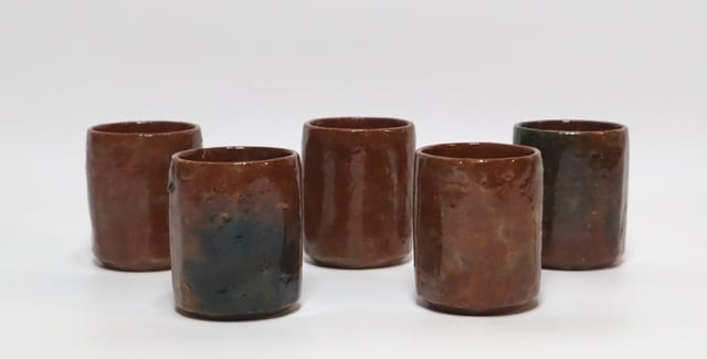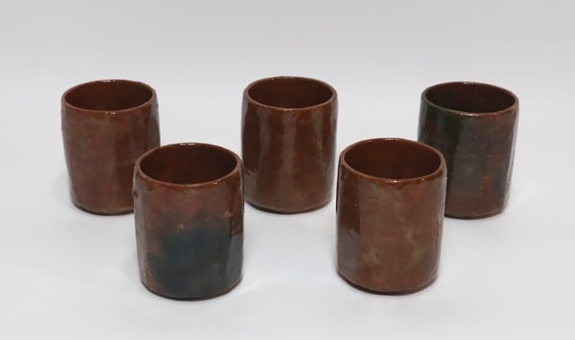 商品説明・楽家4代一入造 赤楽筒向う付 5客