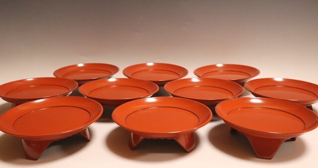 商品説明・辻石斎造 朱台皿 10客 共箱