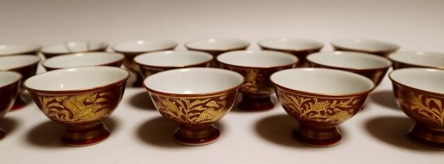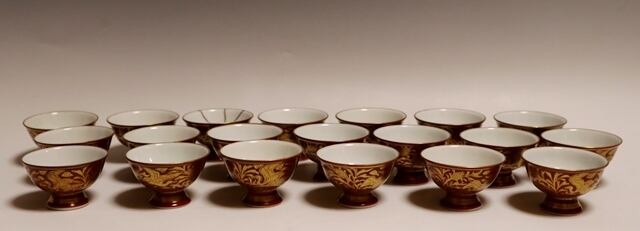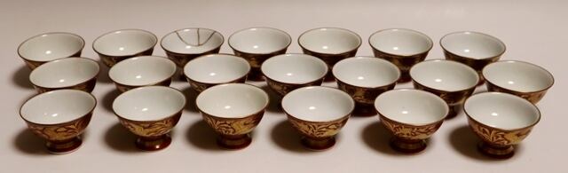 商品説明・初代三浦竹泉造 金襴手盃 20客