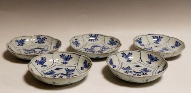 商品説明・古染付輪花図小皿 5枚 箱なし