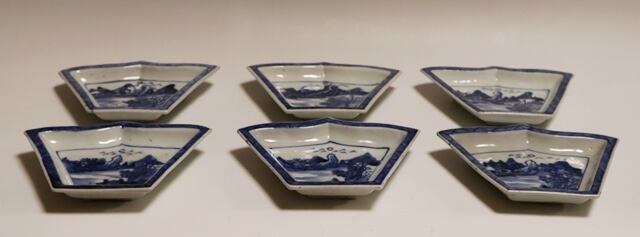 古染付け山水図皿 6枚