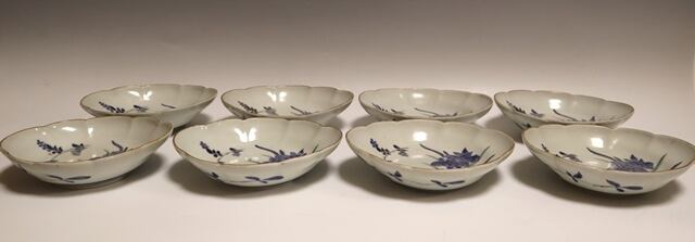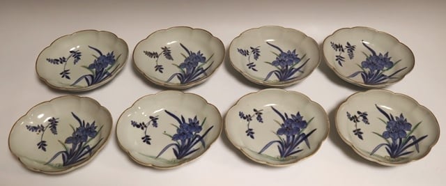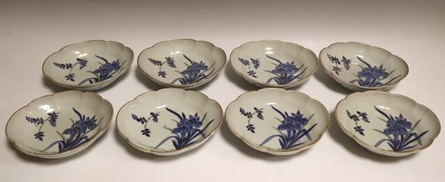 商品説明・古伊万里アヤメ図皿 8客 箱なし