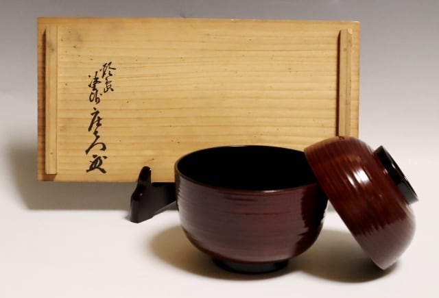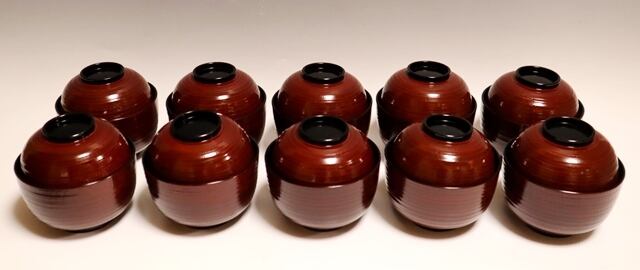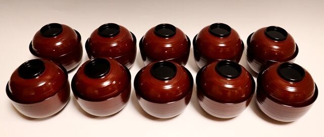 商品説明・外梚縄目溜塗煮物椀 10客 箱あり