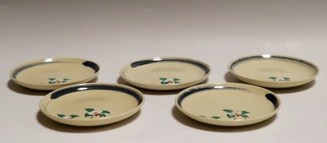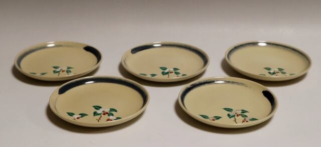 商品説明・永楽善五郎造仁清やぶこうじ図小皿 5枚 共箱