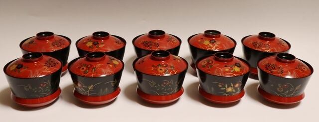 田中表阿彌造 草花蒔絵杵型椀 10客