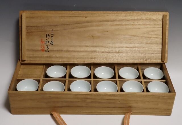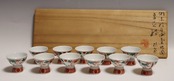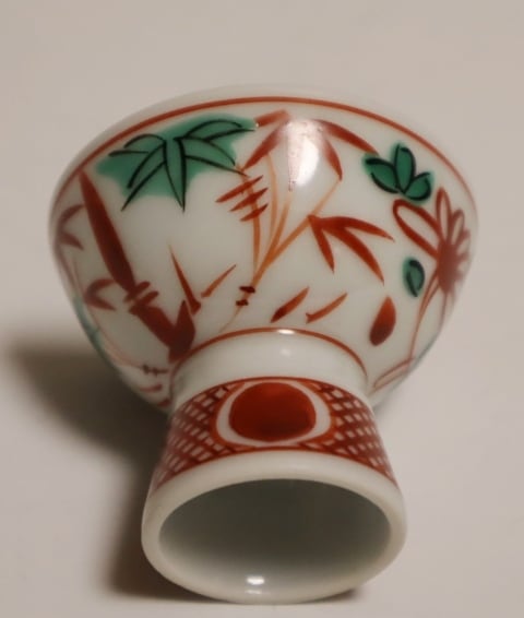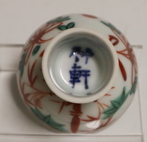 商品説明・三浦竹軒造倣赤絵呉須菊竹図朱盃 11客 共箱
