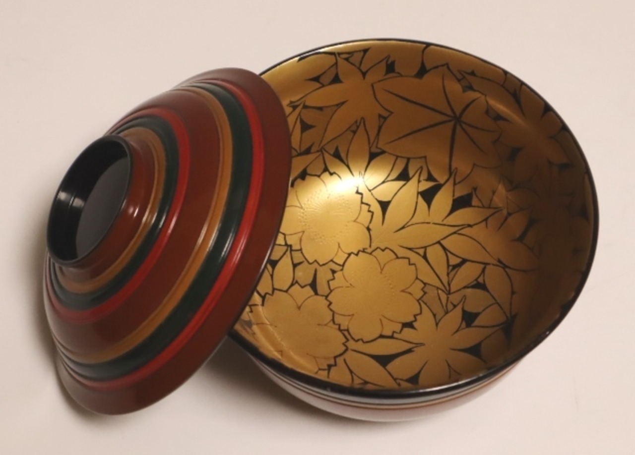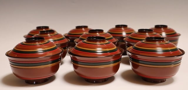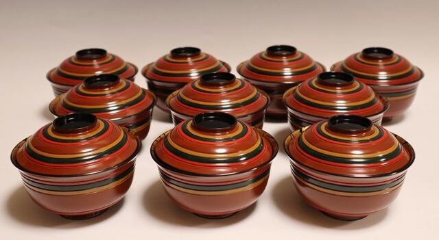 楊光堂造雲錦蒔絵独楽塗吸い物椀 10客