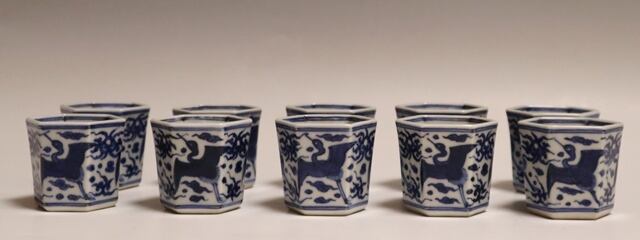 華中亭道八造六世青華雲鶴紋猪口 10客