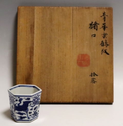 商品説明・華中亭道八造六世青華雲鶴紋猪口 10客 共箱