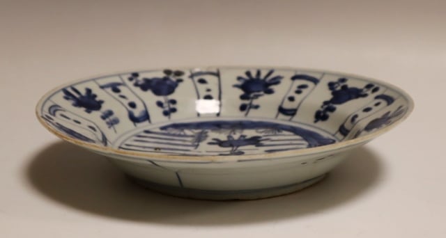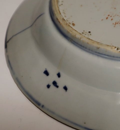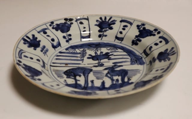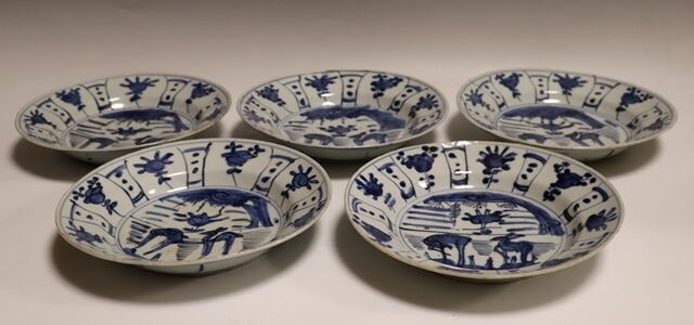 商品説明・古染付芙蓉手樹下鹿図七寸皿 5客 箱あり