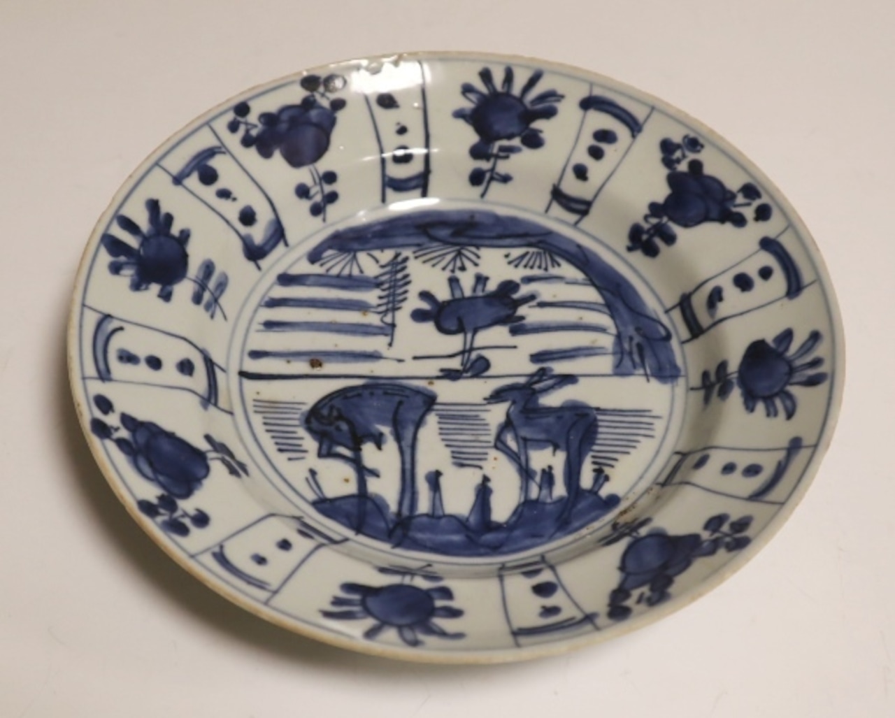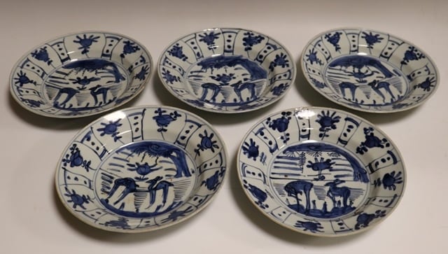 古染付芙蓉手樹下鹿図七寸皿 5客