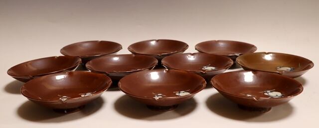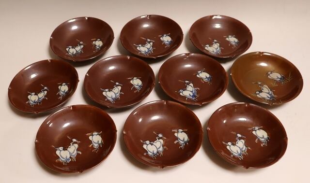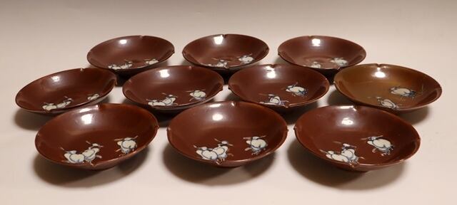 都賀田勇馬造吸坂写白鷺模様小皿 10客
