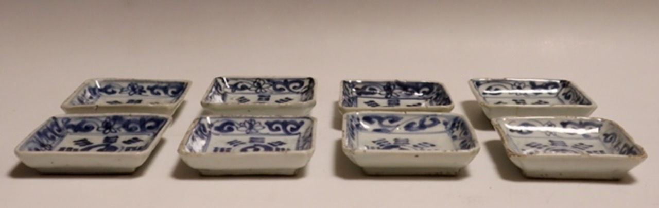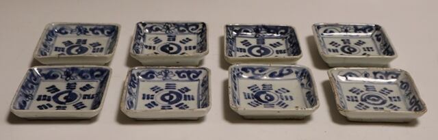 商品説明・古染付 算木紋四方皿 8枚 箱なし