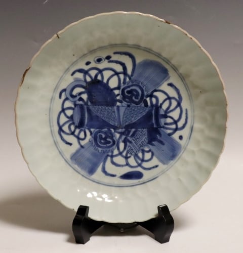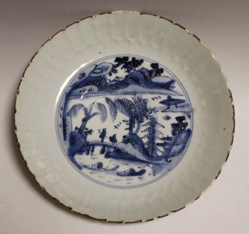 商品説明・古染付 輪花絵変り中皿 5枚 箱なし