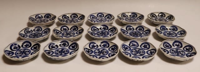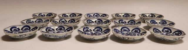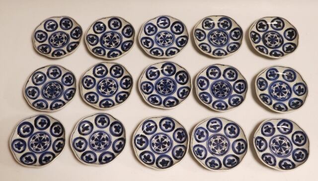 商品説明・古伊万里染付 丸紋手塩皿 15枚 箱あり