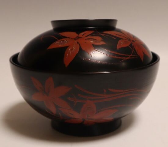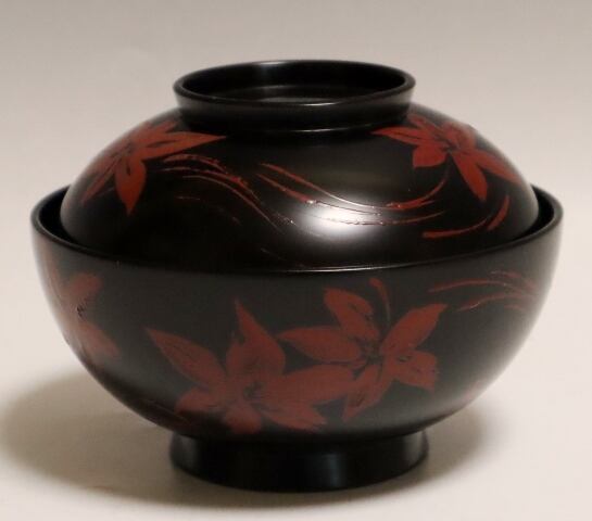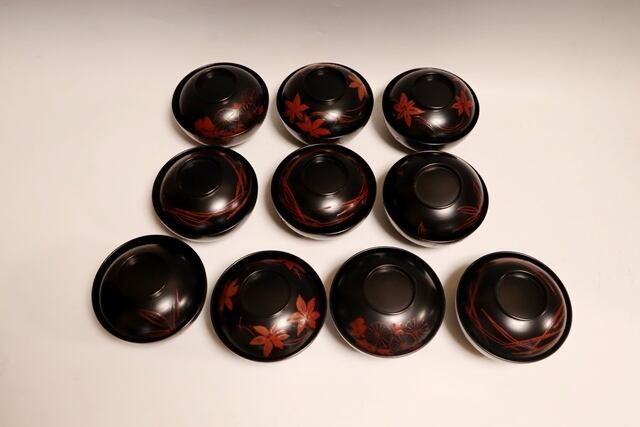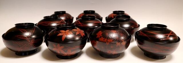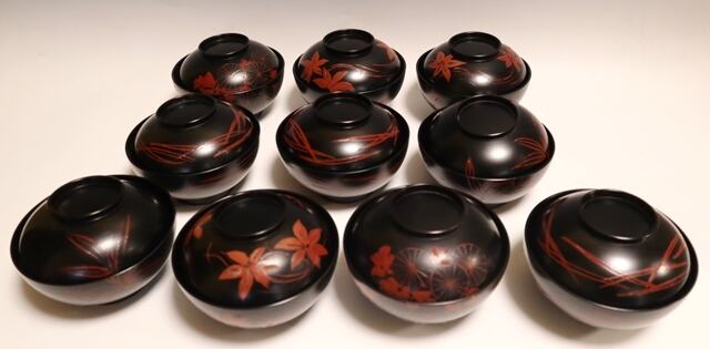 商品説明・朱松竹菊絵変り 吸い物椀 10客 箱あり
