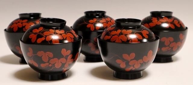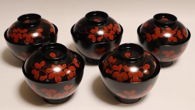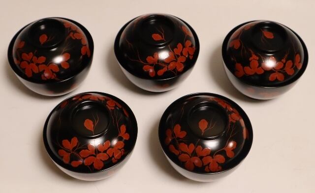 商品説明・和田瑾斎造 夕顔蒔絵椀 5客 共箱