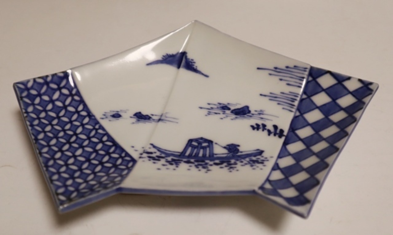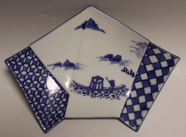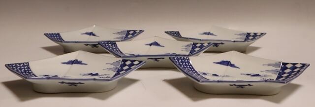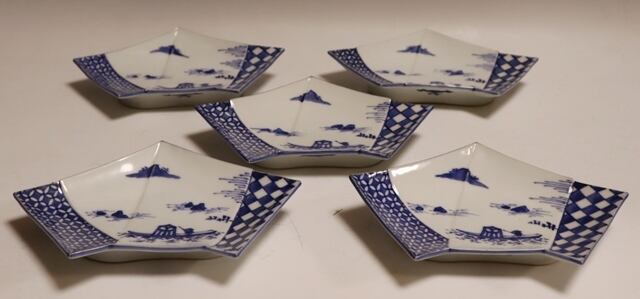 商品説明・宮永東山造 染付遊舟図刺身皿 5客 共箱