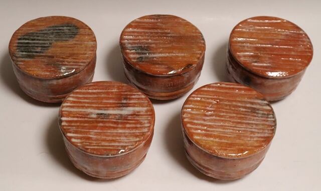 商品説明・楽11代慶入造 赤蓋物 5客 共箱