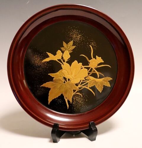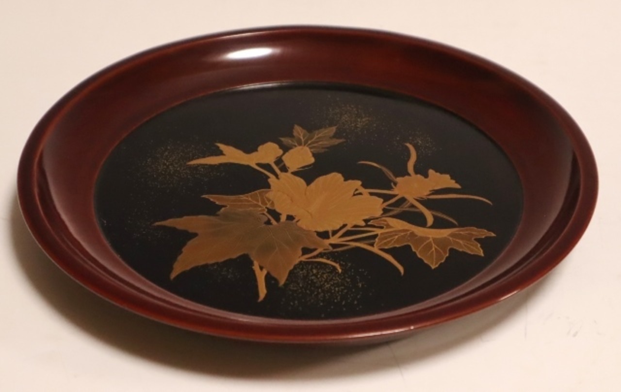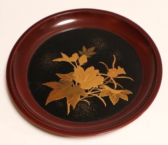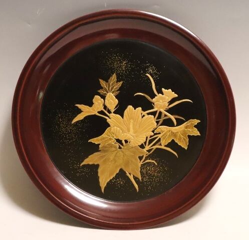 商品説明・芙蓉花蒔絵盆 1枚 箱なし