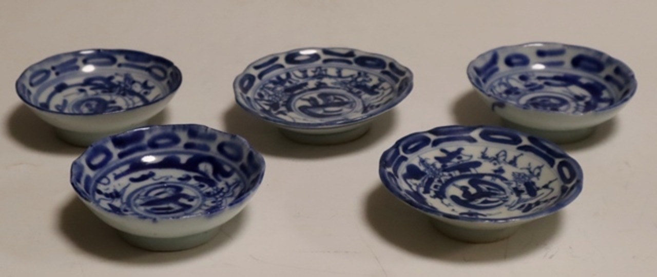 商品説明・新渡染付 鳳鳳山水紋豆皿 5枚 箱あり