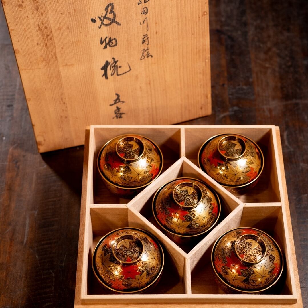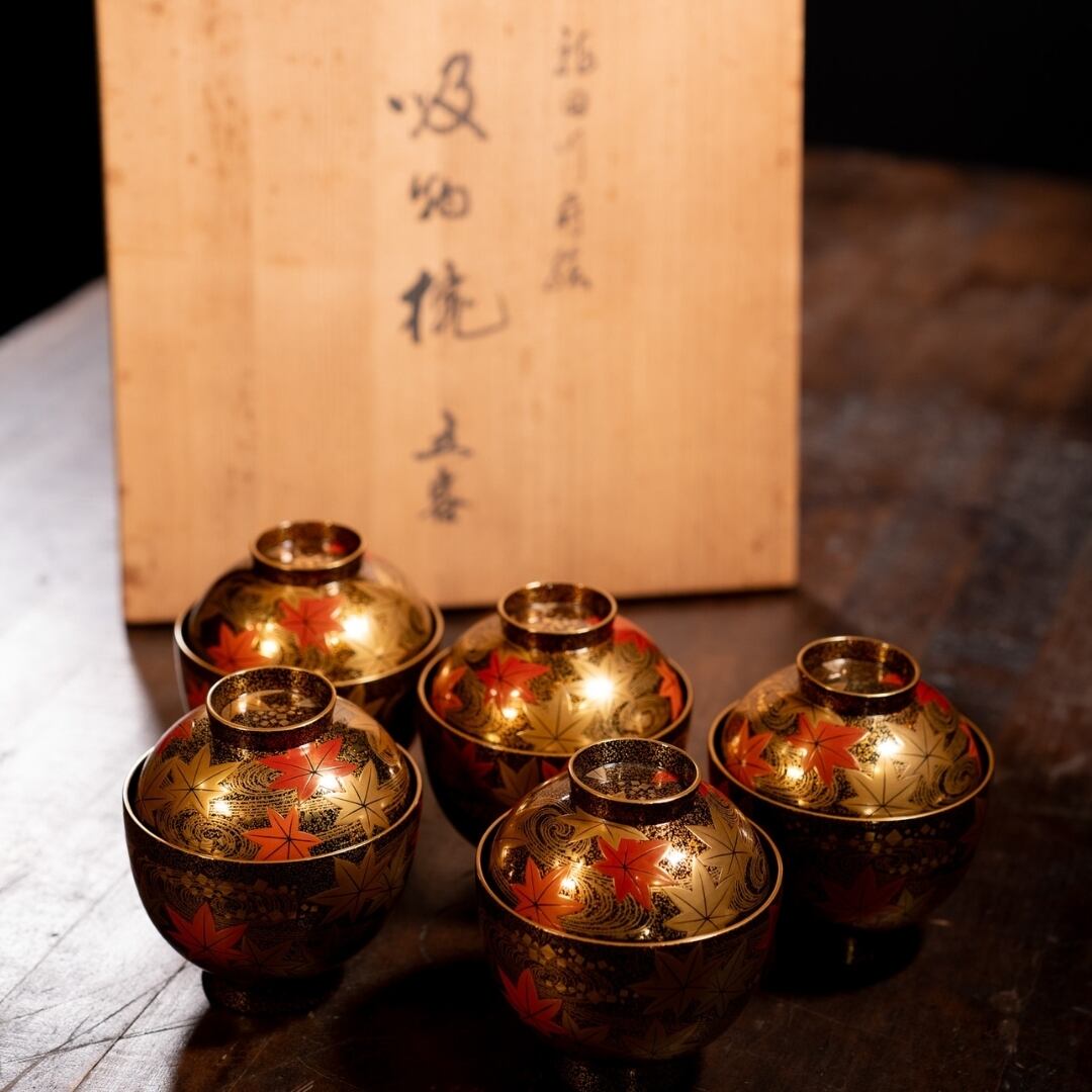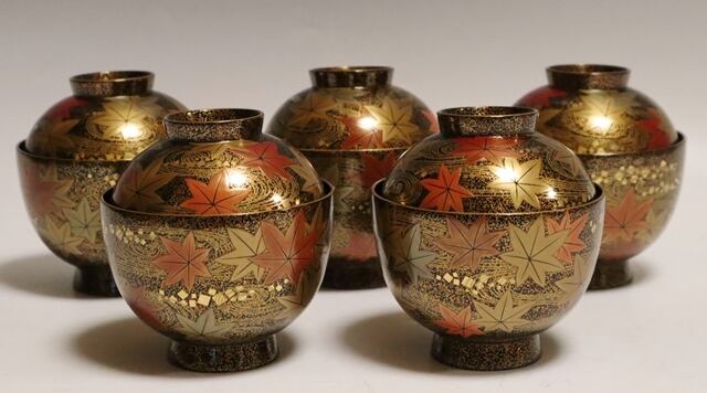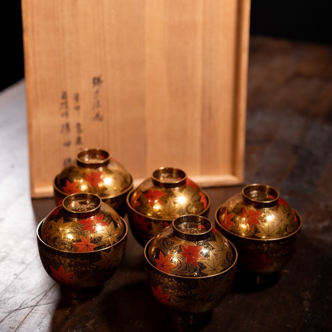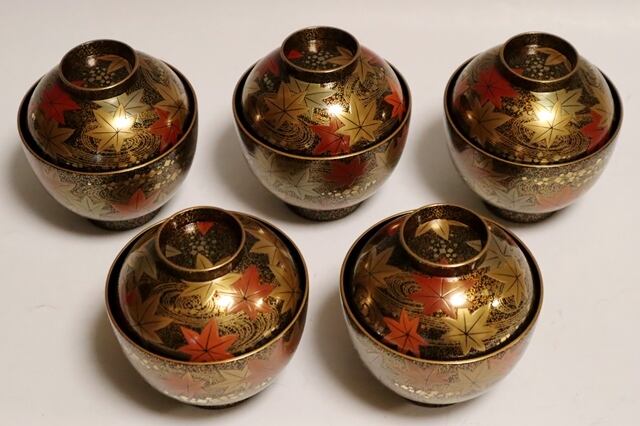 龍田川蒔絵吸物椀 5客 共箱