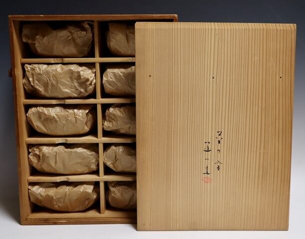 高橋道八造 色絵独楽の図 向う付 大10客 小9客