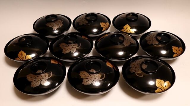 菊の葉蒔絵煮物椀 10客