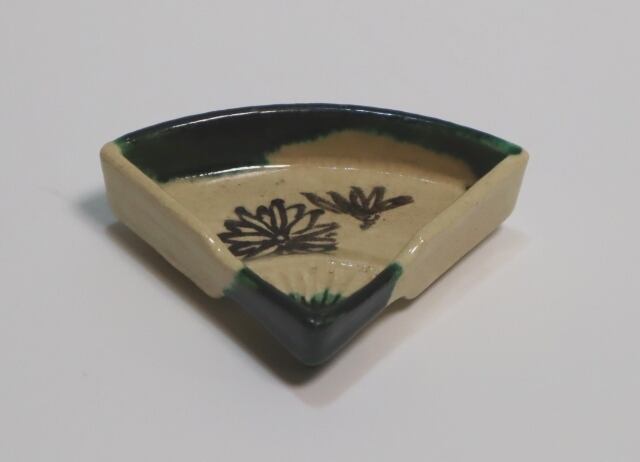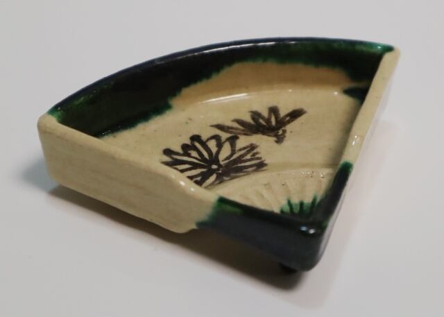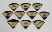楽13代惶入造 織部薬色分扇面絵皿 10客