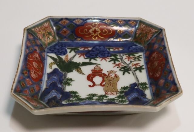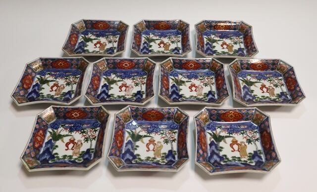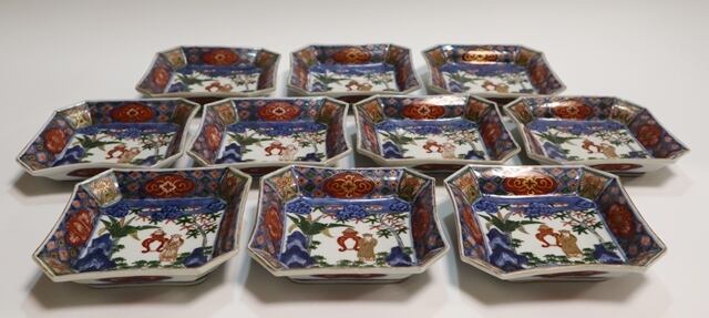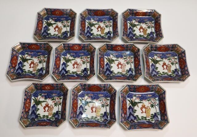 商品説明・古伊万里 染錦角皿 10客 箱あり