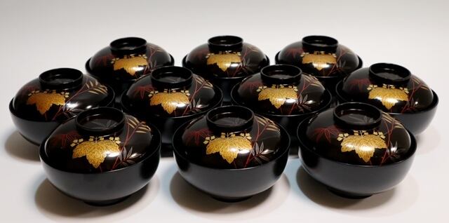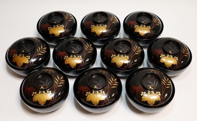 商品説明・桐蒔絵吸い物椀 10客 箱あり